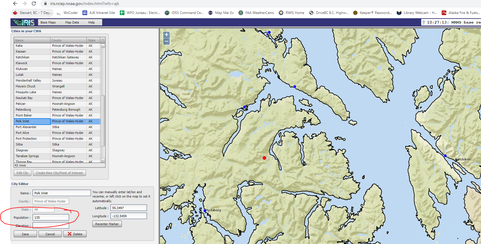 It was discovered that two of our CWA main cities were no longer in